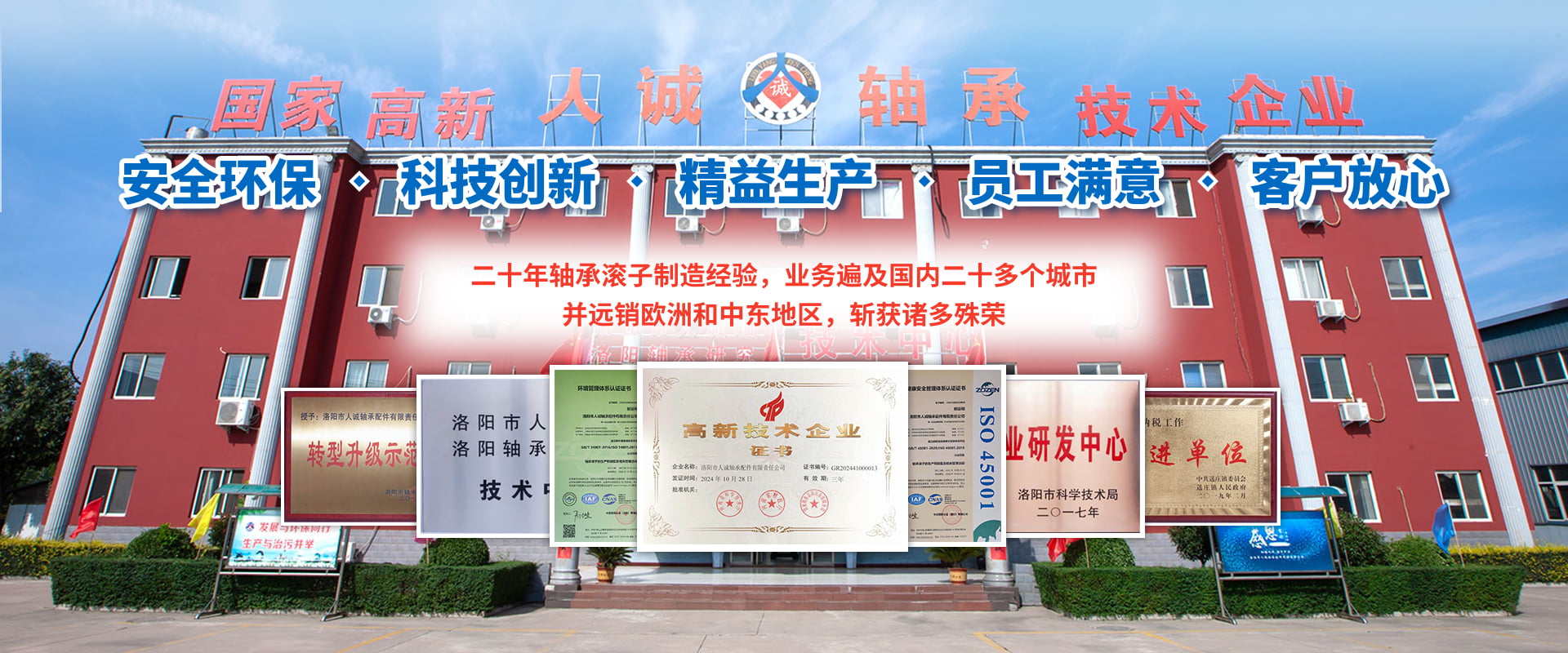 洛陽(yáng)市人誠(chéng)軸承配件有限責(zé)任公司成立于2003年,2015年由洛陽(yáng)搬遷至孟津循環(huán)經(jīng)濟(jì)區(qū)送莊鎮(zhèn)梁新路,占地60畝,建筑面積20000余平方米。公司專(zhuān)注生產(chǎn)高精圓錐軸承滾子,可根據(jù)客戶需求研發(fā)及來(lái)樣加工,年產(chǎn)精品滾子4億粒。 我們始終堅(jiān)持“安全環(huán)保、科技創(chuàng)新、精益生產(chǎn)、員工滿意、客戶放心”的經(jīng)營(yíng)理念。先后與河南科技大學(xué)、洛陽(yáng)師范學(xué)院、方智測(cè)控合作,并與國(guó)家洛陽(yáng)軸承研究所聯(lián)合成立“技術(shù)中心”,建立了良好的產(chǎn)學(xué)研合作機(jī)制,為公司的創(chuàng)新發(fā)展打下了堅(jiān)實(shí)的基礎(chǔ)。 2018年公司被認(rèn)定為國(guó)家高新 技術(shù)企業(yè),通過(guò)了IATF16949:2016質(zhì)量管理體系、環(huán)境管理體系、職業(yè)健康安全管理體系、知識(shí)產(chǎn)權(quán)管理體系等多項(xiàng)認(rèn)證。擁有完善的檢測(cè)手段,先進(jìn)的工藝,穩(wěn)定的設(shè)備,優(yōu)良的服務(wù)。公司董事長(zhǎng)葉會(huì)卿為洛陽(yáng)市工商聯(lián)副主席,洛陽(yáng)市軸承滾子行業(yè)協(xié)會(huì)會(huì)長(zhǎng),法人李?lèi)?ài)芳女士從事軸承滾子制造30余年,積累了豐富的生產(chǎn)管理經(jīng)驗(yàn),誠(chéng)實(shí)守信、務(wù)實(shí)、合作、共贏的作風(fēng)深受業(yè)界好評(píng)。